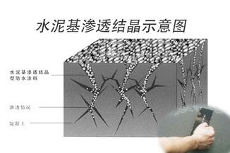 “水泥基滲透結(jié)晶防水材料”是一種灰色粉末物質(zhì),所含有的活性化學(xué)成分,會隨著水滲透進(jìn)入混凝土結(jié)構(gòu)的孔隙和縫隙中。在混凝土的微孔、微縫及毛細(xì)管中傳輸、充盈,催化混凝土內(nèi)的微粒和未完全水化的成分再次發(fā)生水化作用,而形成不溶性的枝蔓狀結(jié)晶并與混凝土結(jié)合成為整體,阻止來自各方向的水及有害物質(zhì),而且該種活性物質(zhì)具有一種催化特性,能夠不斷活化混凝土中未反應(yīng)完全的水泥粒子或者結(jié)晶較差的物質(zhì),因此它能夠不斷的循環(huán)利用。只要有水存在,它就能不斷地起催化作用,使混凝土中的硅酸鹽物質(zhì)進(jìn)一步結(jié)晶化,從而起到防水作用。當(dāng)沒有水分時,其中的活性成份保持靜止?fàn)顟B(tài),但當(dāng)再與水分接觸時,上述的化學(xué)作用及致密過程便會重復(fù)發(fā)生。因此混凝土結(jié)構(gòu)即使局部受損滲漏(裂縫小于0.4mm) 在結(jié)晶作用下,會自行修補(bǔ)愈合,并具有多次抗?jié)B能力,從而在本質(zhì)上改變了普通混凝土結(jié)構(gòu)體積不穩(wěn)定而再次帶來的裂滲,因此具有永久的防水效果。根據(jù)ASTM、GB、JIS等標(biāo)準(zhǔn)測試完成的試驗(yàn),水泥基滲透結(jié)晶防水材料對混凝土結(jié)構(gòu)不僅防水而且防止化學(xué)有害物質(zhì)的侵蝕,保護(hù)混凝土具有極強(qiáng)功效。應(yīng)用范圍: